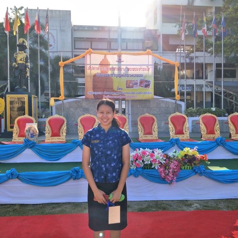 ปัจจุบันเป็นข้าราชการครู ตำแหน่งครูผู้ช่วย โรงเรียนวัดพรหมโลก
