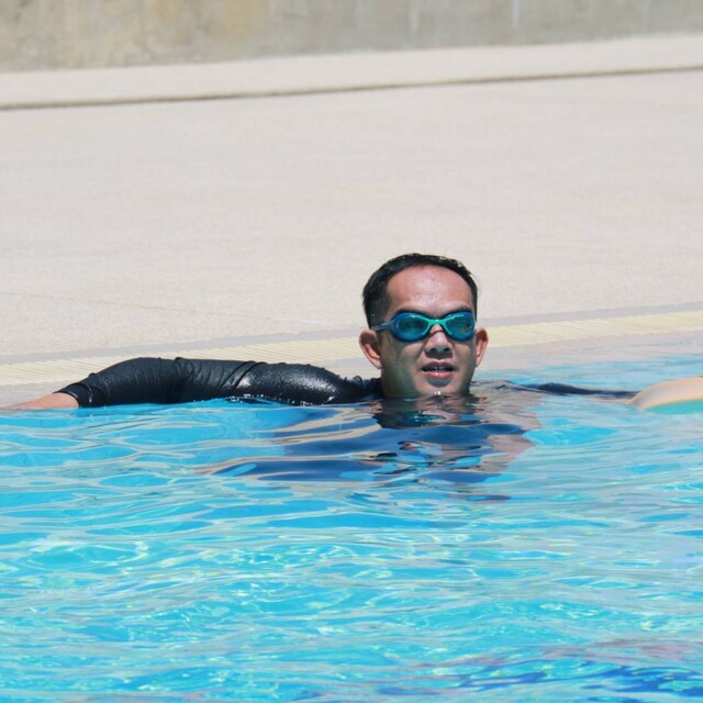 นายภาณุวัฒน์ คุ้มสุวรรณ สอนว่ายน้ำ