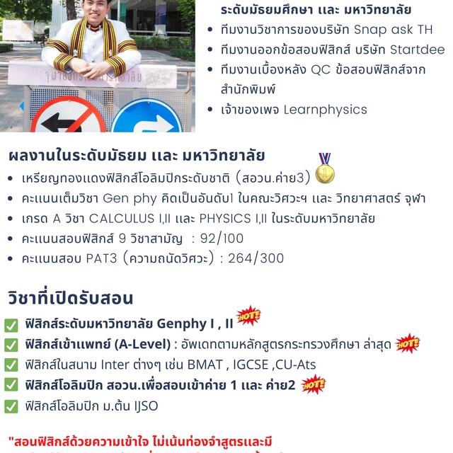 สวัสดีครับ พี่ P เป็นติวเตอร์สอนฟิสิกส์ ปัจจุบันจบการศึกษาจากคณะวิศวกรรมศาสตร์ สาขาเครื่องกล จุฬา รับสอนทั้งสด/ออนไลน์ ประสบการณ์สอนฟิสิกส์มากกว่า 6 ปี