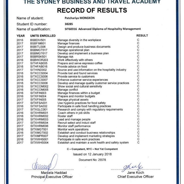 - Advanced Diploma of Hospitality Management course ซิดนี่ย์, ออสเตรเลีย