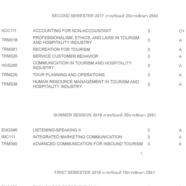 ผลการเรียนในภาควิชาภาษาอังกฤษได้สูงสดตลอดทุกภาคการเรียนตั้งแต่มัธยมถึงมหาวิยาลัย