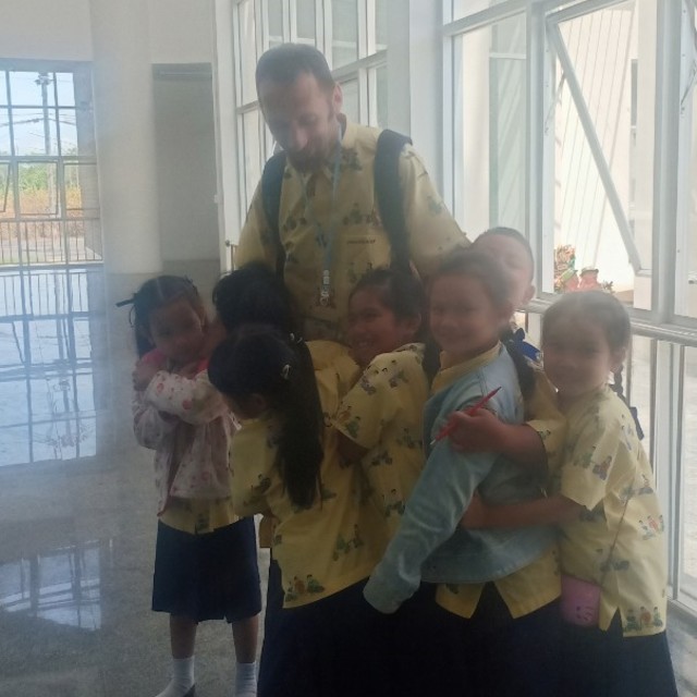 นายเดแนซ บิชอฟ (ทีเชอร์เด) สอนภาษาอังกฤษ คณิตศาสตร์ วาดรูป