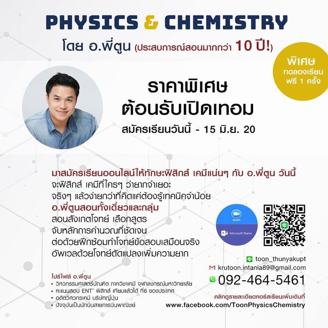 ฟิสิกส์-เคมี อ.พี่ตูน สอนคณิตศาสตร์ วิทยาศาสตร์ ฟิสิกส์ เคมี