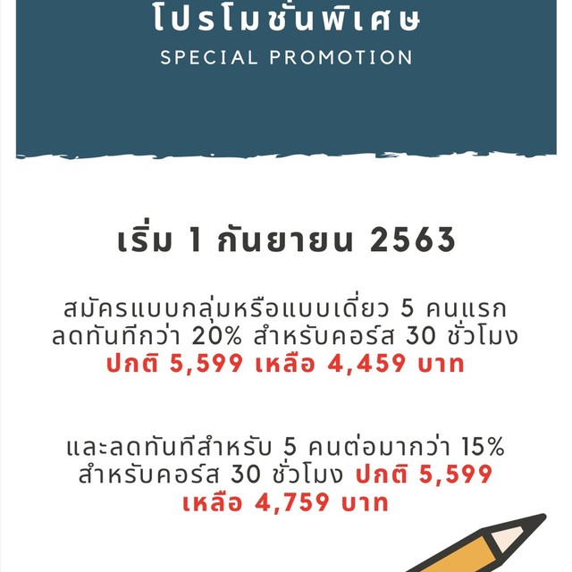 คอร์ส 30 ชั่วโมง 5,599 บาท นักเรียนที่สมัคร 10 คนแรก