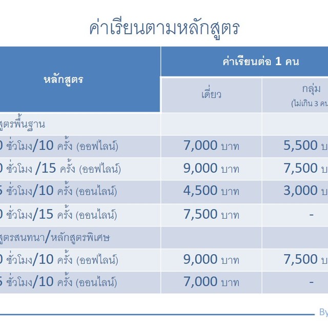 📢 คอร์สพื้นฐานออนไลน์ 15 ชม. / 10 ครั้ง / 4,500 บาท (เดี่ยว) / 3,000 (กลุ่ม)