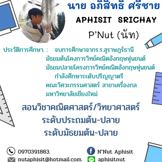 อภิสิทธิ์ ศรีชาย สอนคณิตศาสตร์ วิทยาศาสตร์ ภาษาจีน ชีววิทยา