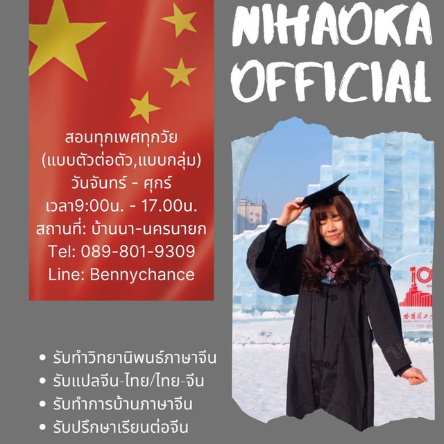 Nihaoka,สวัสดีค่า เหล่าซือเบญนะคะ รับสอนภาษาจีนแถวบ้านนา-นครนายกค่า