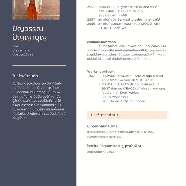ประสบการณ์สอนมากกว่า 5 ปี จบการศึกษามหาวิทยาลัยศิลปากร