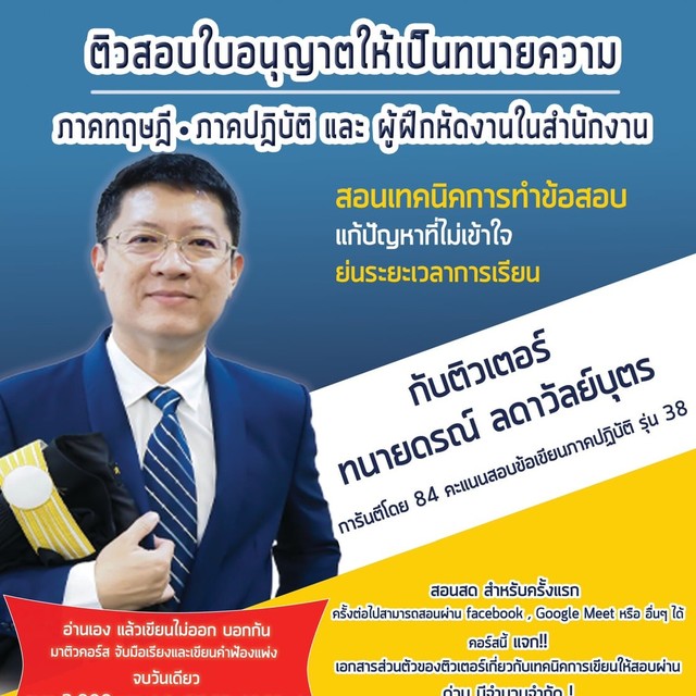 ติวสอบทนายภาคปฏิบัติ 500 บาท ต่อชั่วโมง