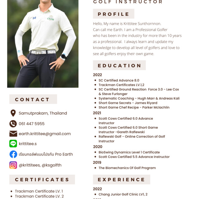 (Professional Golfer Certified By Thailand Professional Association No. TP0631)
