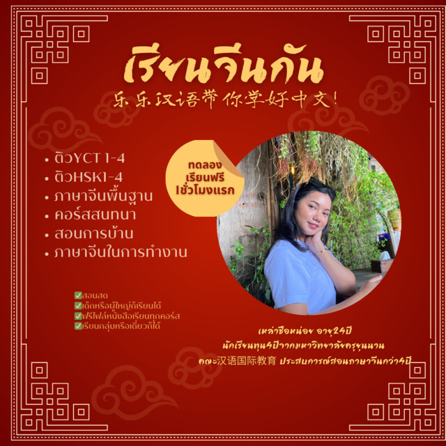 สอนการการบ้าน ติวสอบจากเนื้อหาในโรงเรียน หรือจะเน้นสนทนากับคนจีนก็รับสอนนะคะ ราคาเริ่มต้นเพียง200บาท / ชั่วโมง