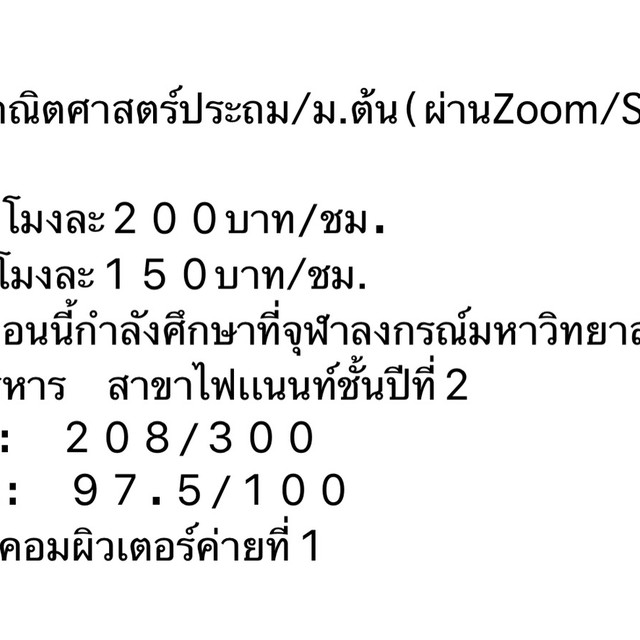 -สามารถรับสอนผ่านทางออนไลน์(zoom) (ตัวต่อตัว200บาท/ชม.)/( แบบกลุ่ม 3คนขึ้นไป ชั่วโมงละ 150)