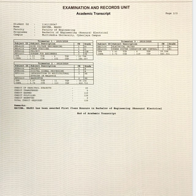 -เรียนจบจากคณะวิศวะไฟฟ้า มหาวิทยาลัย มัลติมีเดียร์ ประเทศมาเลเซีย ด้วยเกียรตินิยมอันดับหนึ่ง