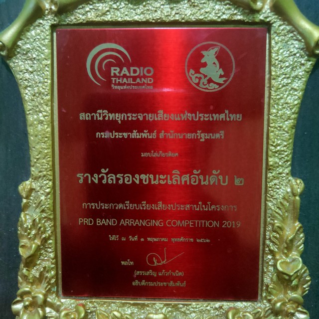 ได้รับรางวัล รองชนะเลิศอันดับ2 รายการเรียบเรียงเสียงประสานของกรมประชาสัมพันธ์