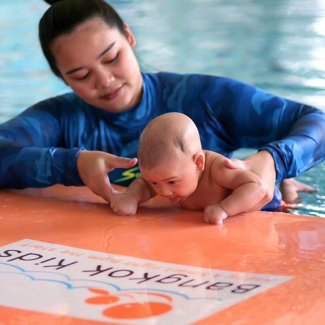 จบหลักสูตรการสอนว่ายน้ำเด็กเล็ก baby swimming จากสถาบัน Birthlight ประเทศอังกฤษ