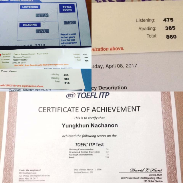 - คะแนนสอบ TOEFL ITP 530 (ระดับ Bronze)