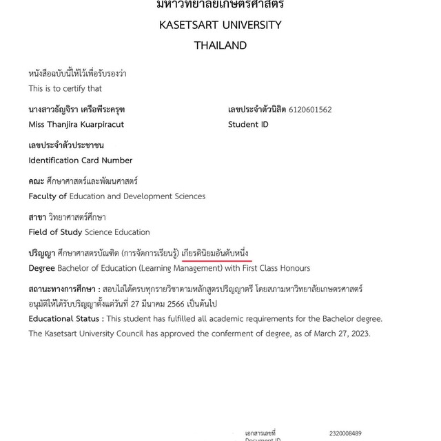 ❤️เกียรตินิยมอันดับ 1 โควต้า “ครูคืนถิ่น” คณะศึกษาศาสตร์ มหาวิทยาลัยเกษตรศาสตร์ กำแพงแสน สาขาวิทยาศาสตร์ศึกษา
