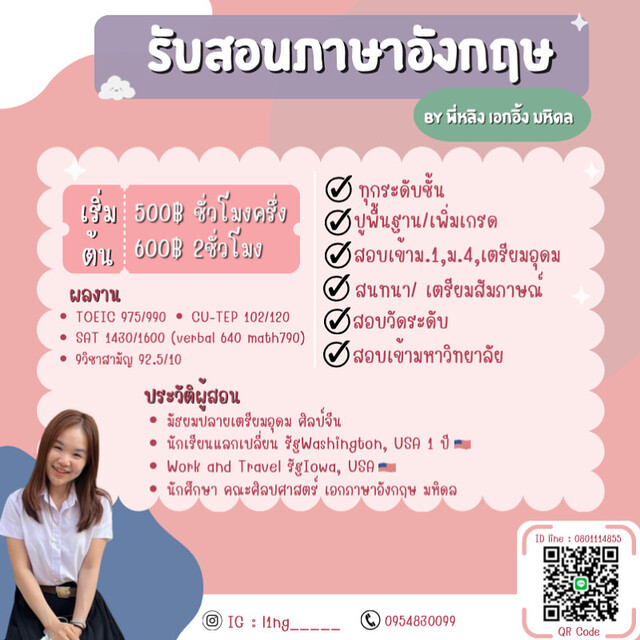 เปิดรับสอนพิเศษออนไลน์ภาษาอังกฤษ