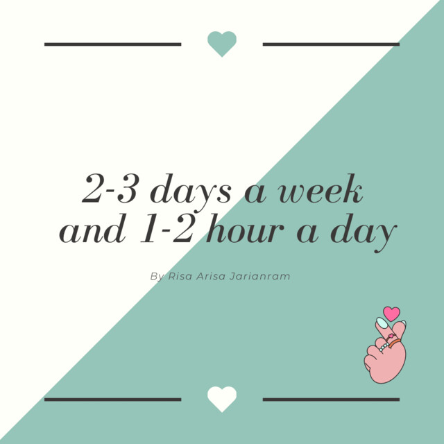 2-3 วัน /สัปดาห์ วันละ 1-2 ชั่วโมง (เลือกเวลาเรียนเองได้ค่ะ)