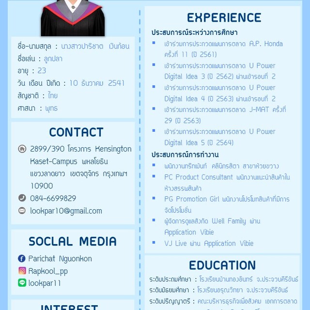 สวัสดีค่ะ ดิฉันจบจากมหาวิทยาลัยศรีนครินทรวิโรฒ คณะบริหารธุรกิจเพื่อสังคม เอกการตลาด