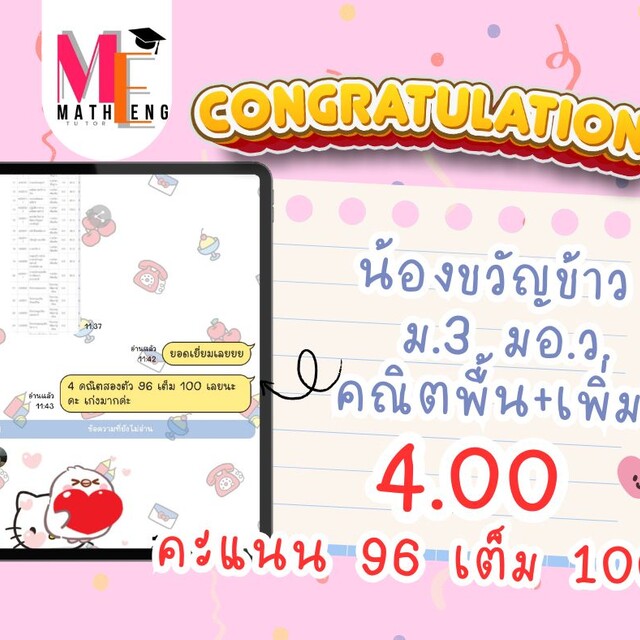 Matheng tutor หาดใหญ่ตอบกลับ:ขอบคุณสำหรับรีวิวนะคะ