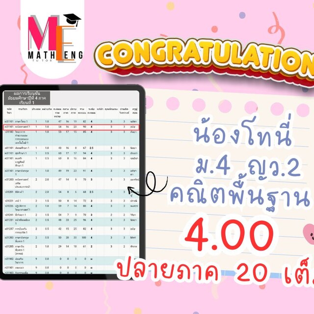 📌การันตีด้วยผลการเรียนเกรด 4 ของน้องๆในสถาบัน