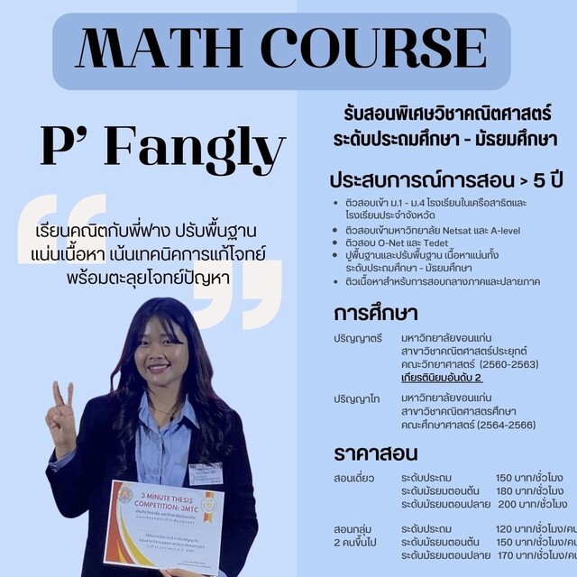 คณิตศาสตร์แน่นเปรี๊ยะ BY ติวเตอร์พี่ฟาง คอร์สเน้นข้อสอบ200 บาท ต่อชั่วโมง