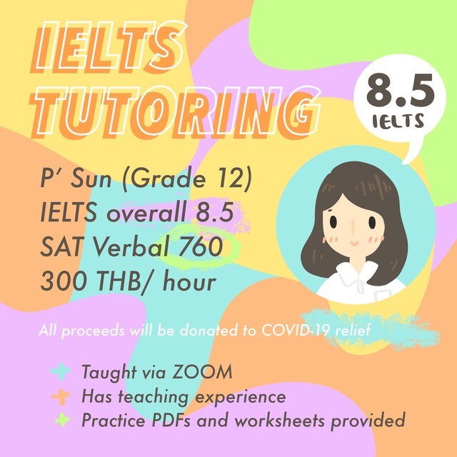 สวัสดีค่ะ รับสอนพิเศษวิชาภาษาอังกฤษ เน้นติวไปสอบ IELTS และ SAT ค่ะ