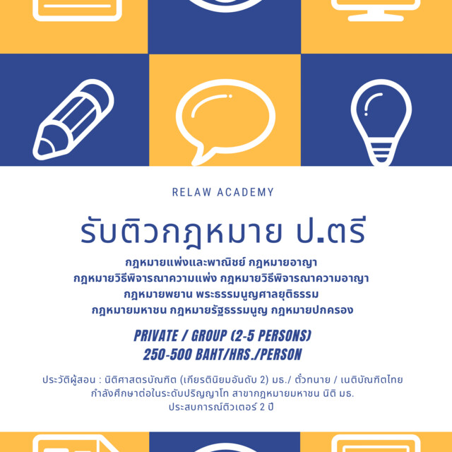 ติวกฎหมายปริญญาตรี400 บาท ต่อชั่วโมง