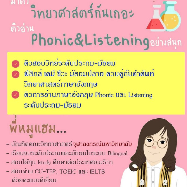 พี่หมูแฮมรับติวสอนพิเศษออนไลน์ วิทย์ คณิต ชีวะ เคมี ฟิสิกส์ ม.ต้น ม.ปลาย มีประสบการณ์สอนมากกว่า 5 ปี มีประสบการณ์สอนน้องๆอินเตอร์ มีผลการสอบ TOEIC IELTS ดีเยี่ยมและสอบผ่านการชิงทุนไปอเมริกา