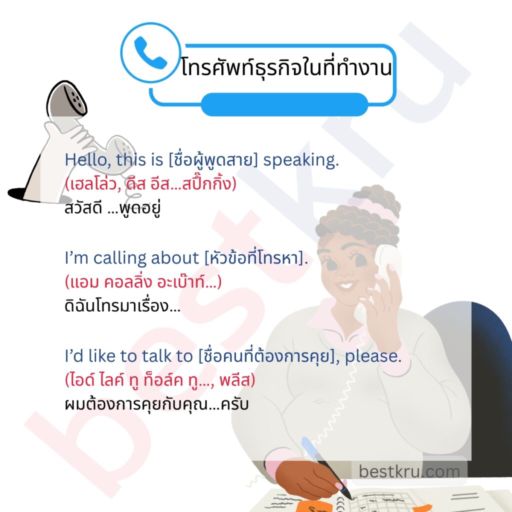 คุยโทรศัพท์ภาษาอังกฤษในที่ทำงาน บทสนทนาทางโทรศัพท์